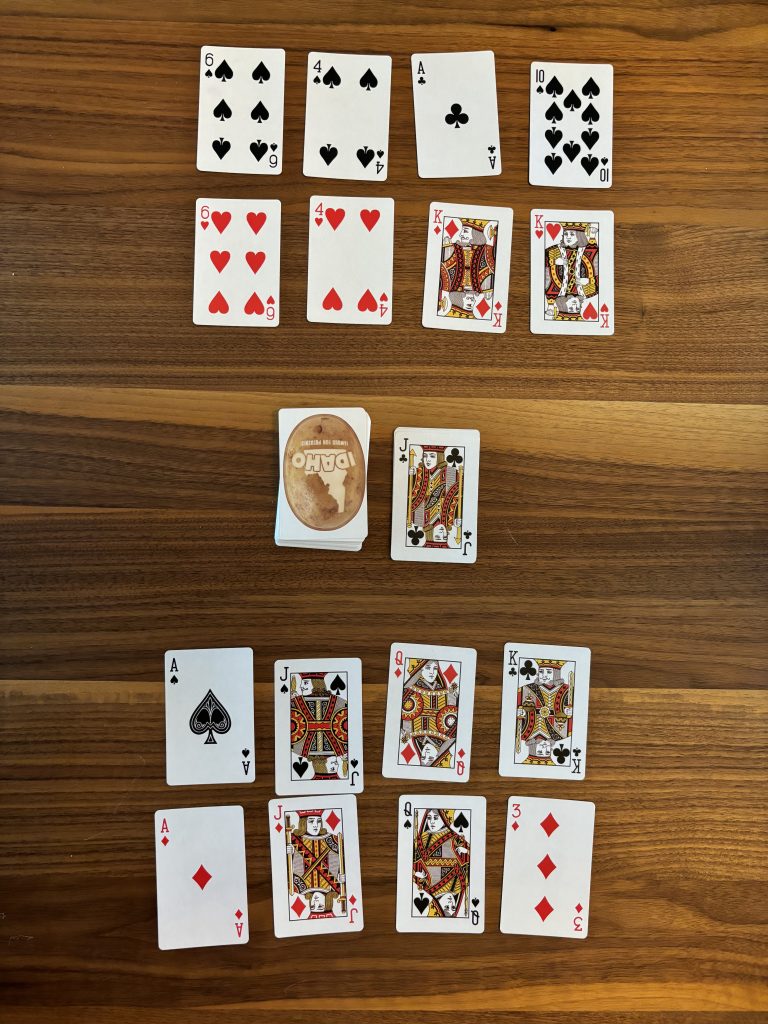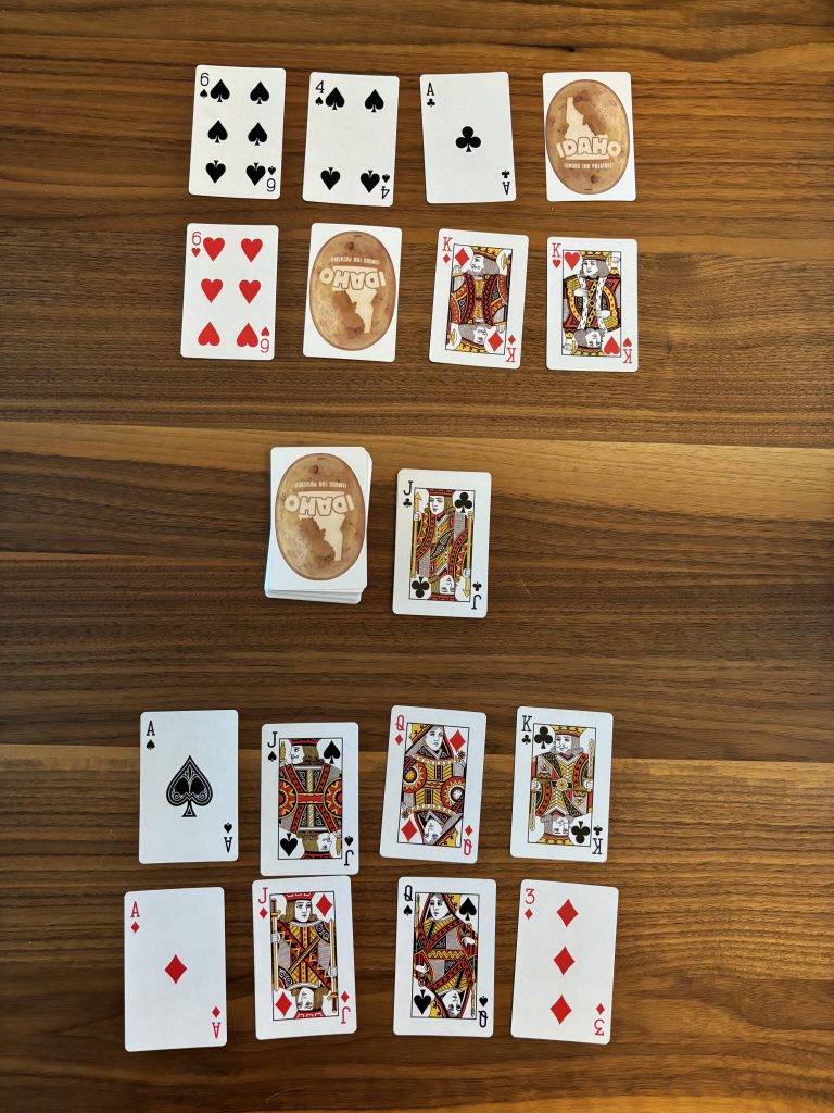 Deal 8 Cards to each player to place in front of them in a 4×2 grid