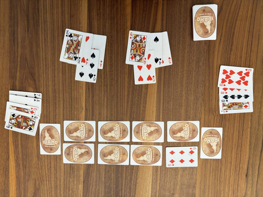 Each players will have 4 card hands for the river. When one of these cards are flipped you must do the intended activity of each card.